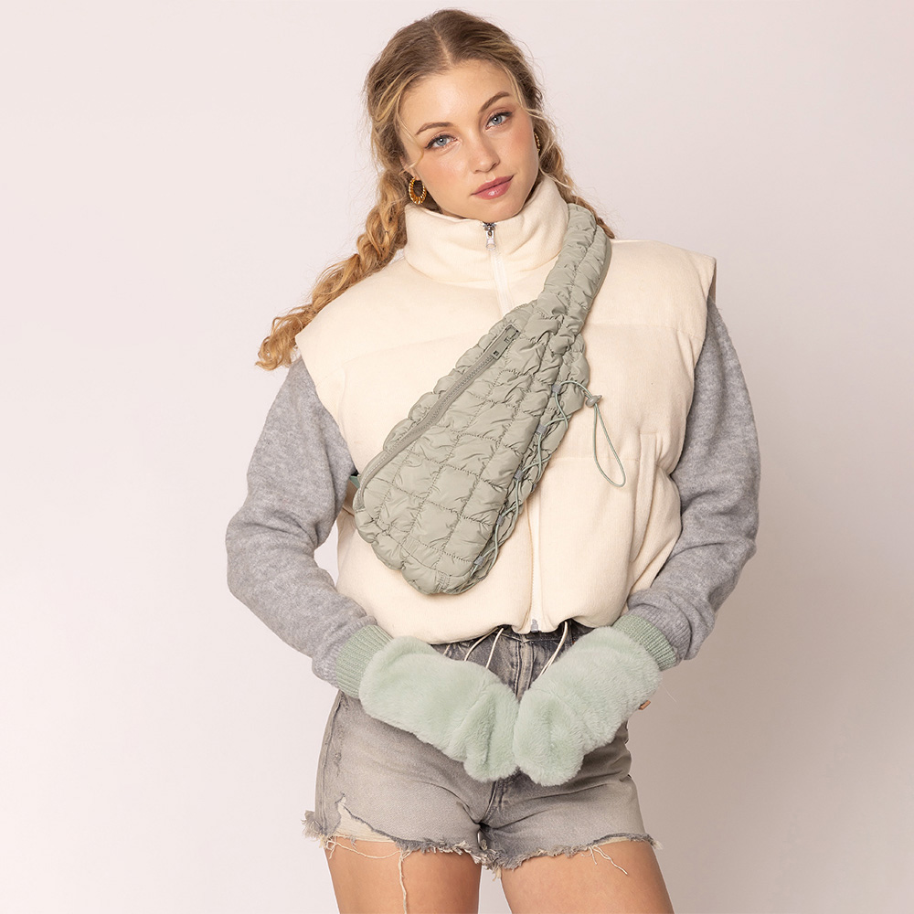 Pearl Handle Chain Faux Fur Handbag Shoulder Bag Crossbody Bag