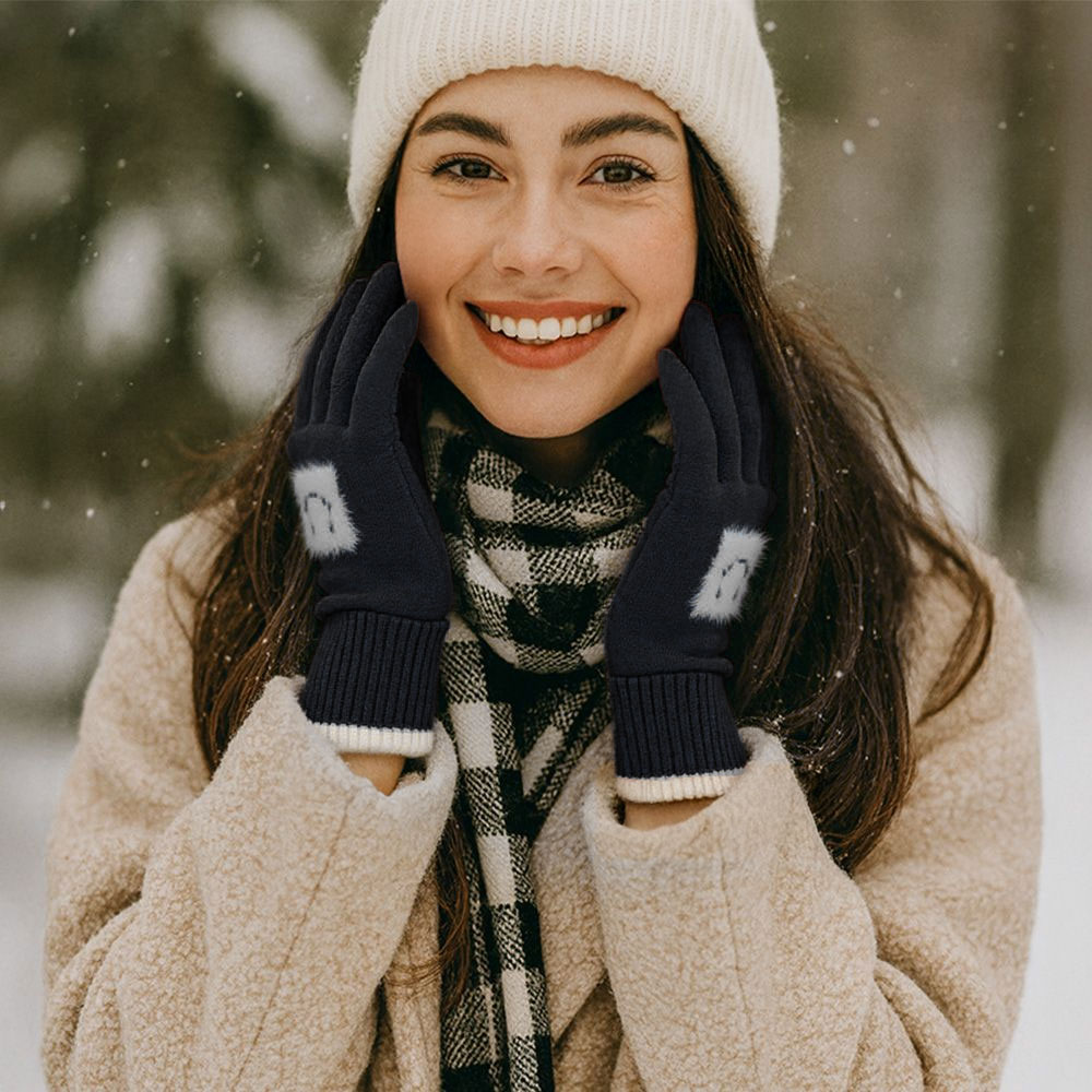 • Cozy knit gloves with smart touch technology, featuring a playful face motif and contrast trim design. Perfect for keeping hands warm while allowing easy use of smartphones and tablets. A stylish and practical cold-weather accessory that combines fun detailing with everyday functionality.