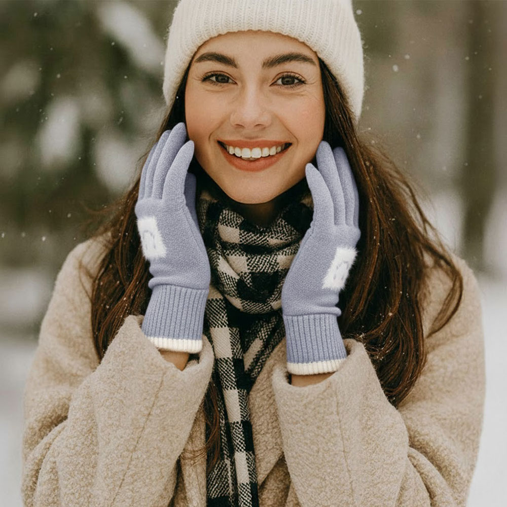 Square Smile Face Patch Contrast Trim Smart Touch Gloves