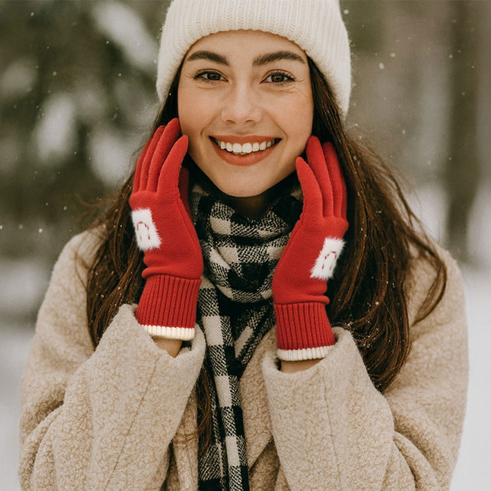 • Cozy knit gloves with smart touch technology, featuring a playful face motif and contrast trim design. Perfect for keeping hands warm while allowing easy use of smartphones and tablets. A stylish and practical cold-weather accessory that combines fun detailing with everyday functionality.