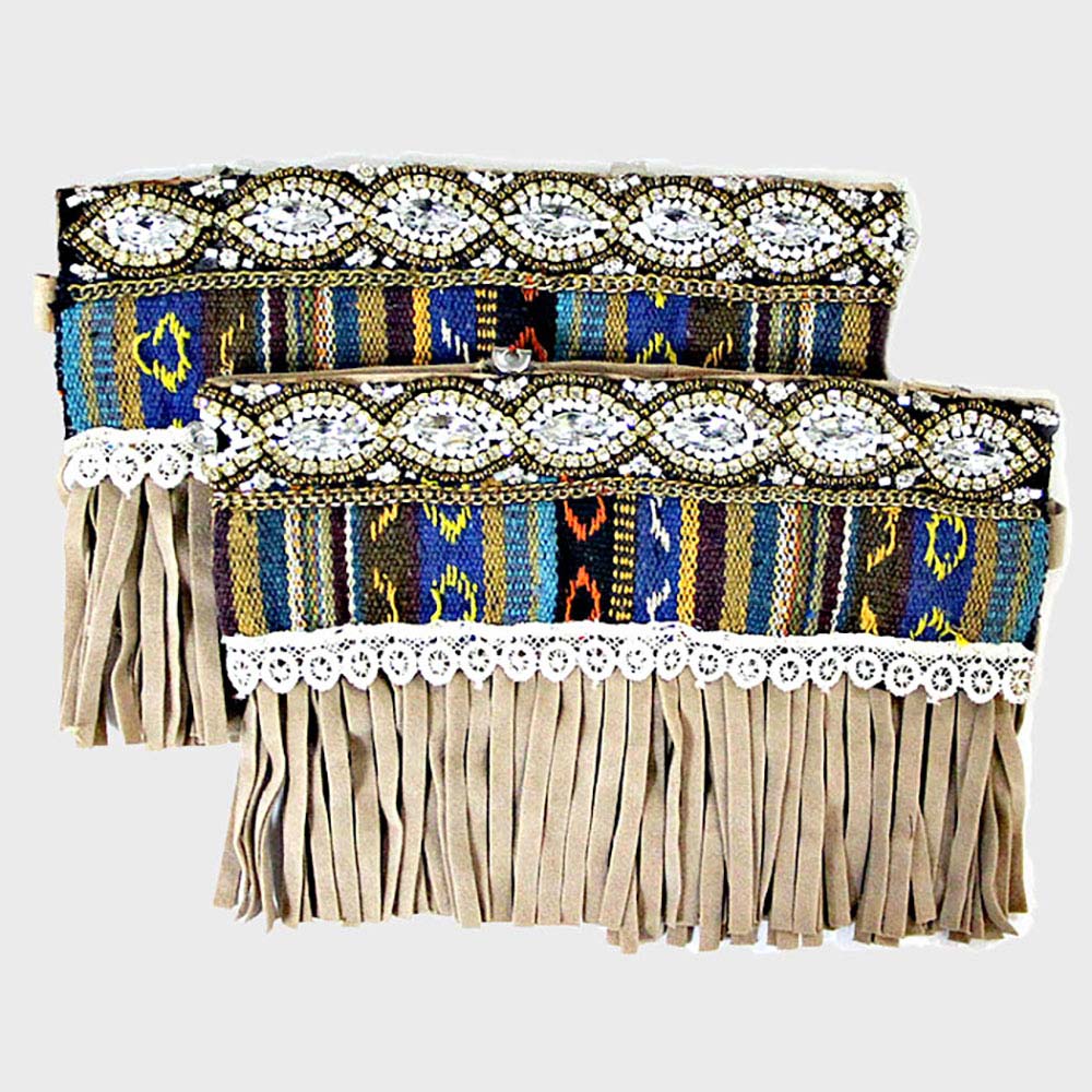 Details • Size : 18" X 5" • Velcro Closure • These embroidered fringe boot cuff accessories combine bohemian artistry with vintage elegance. Designed with ornate embroidery, shimmering accents, and playful fringe, they slip effortlessly over any boot for an instant style boost—perfect for adding a creative touch to every outfit.