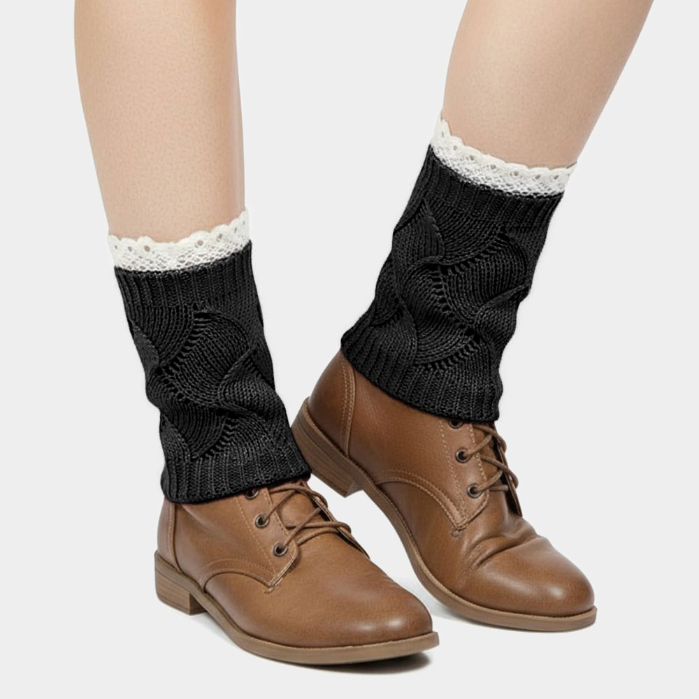 Lace Trim Knit Leg Warmer Boot Topper