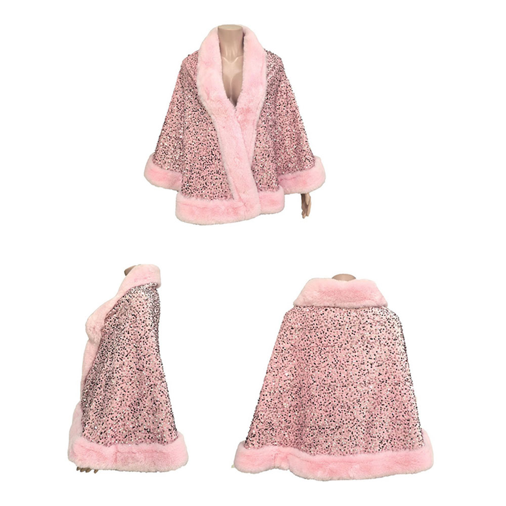 Festive Sequin Faux Fur Trim Shawl Poncho