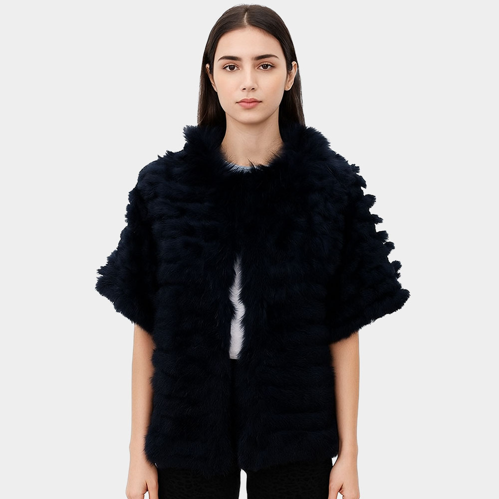 • This short sleeve fur jacket brings effortless sophistication to any look. Featuring a plush collar and structured silhouette, it adds warmth and refined texture. Perfect for layering over evening wear or casual chic outfits, it’s a timeless piece for elegant, modern styling.