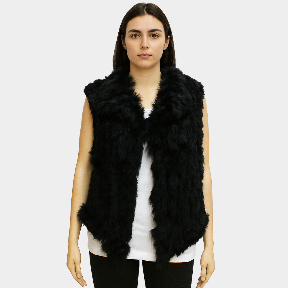 Luxe Textured Faux Fur Oversized Collar Sleeveless Vest