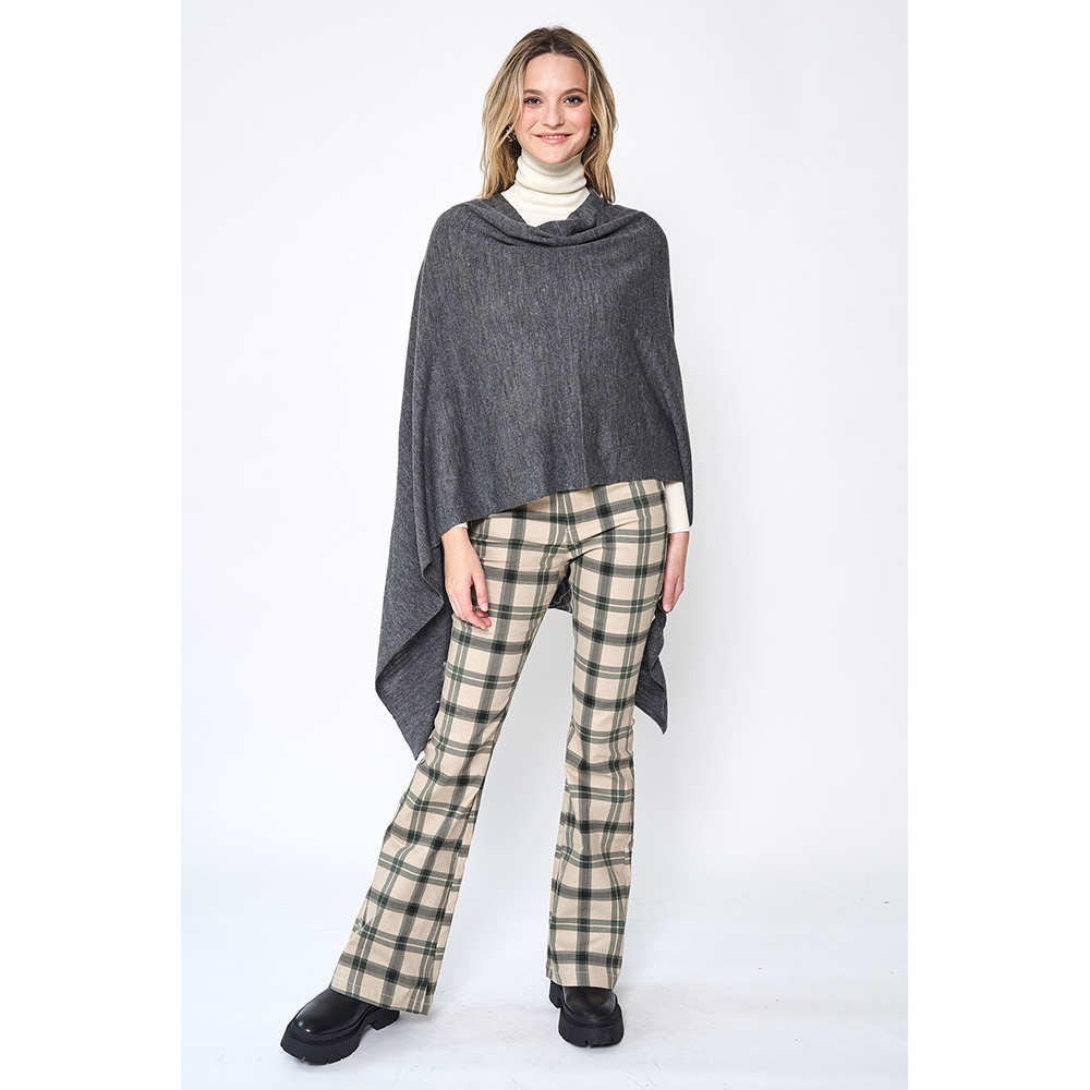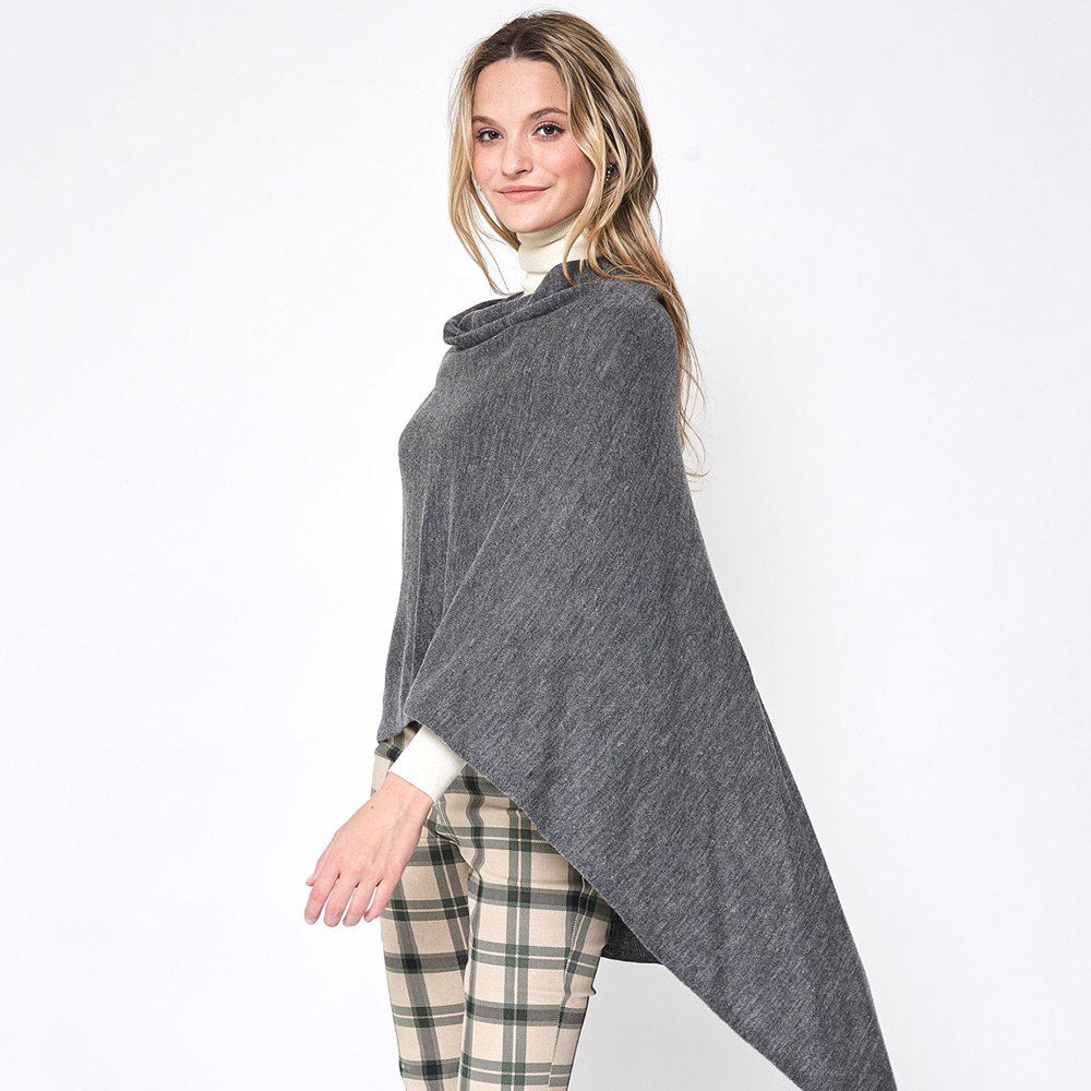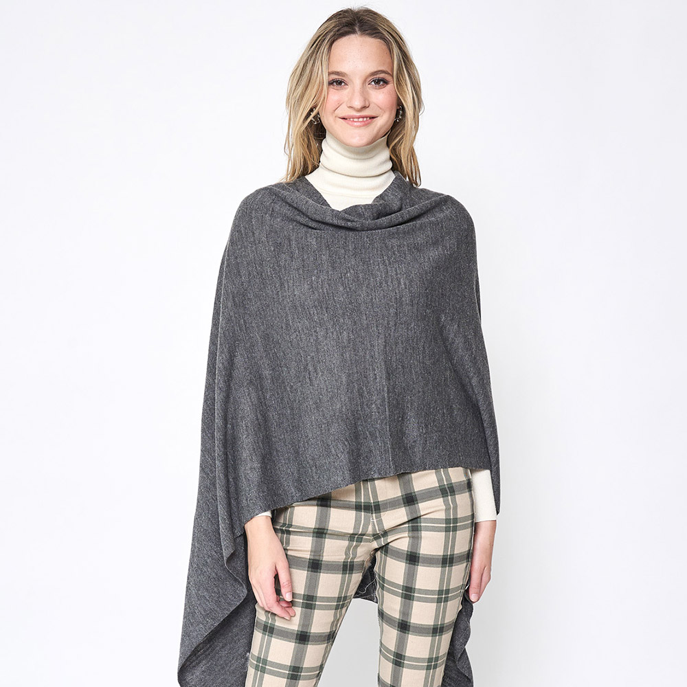 Details • Size : 75.6" X 24.8" • Material : 100% Acrylic • Elevate your style with this classic asymmetrical poncho, designed for effortless layering. Its versatile drape and elegant silhouette make it the perfect wrap for both casual outings and refined occasions, offering timeless charm and cozy sophistication.