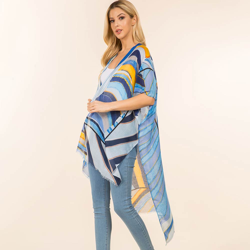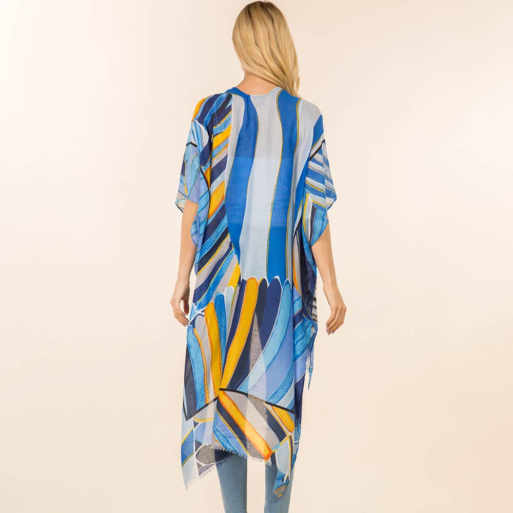Abstract Geometric Pattern Open Front Long Kimono Poncho