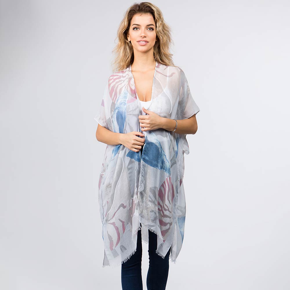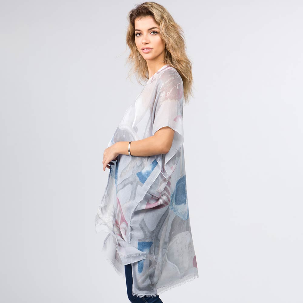• Lightweight sheer kimono-style wrap designed with an abstract artistic print and a flowing open-front silhouette. Drapes effortlessly over tops, dresses, or casual outfits for everyday wear or travel styling. A versatile layering piece ideal for gifting and boutique collections seeking relaxed, modern elegance.