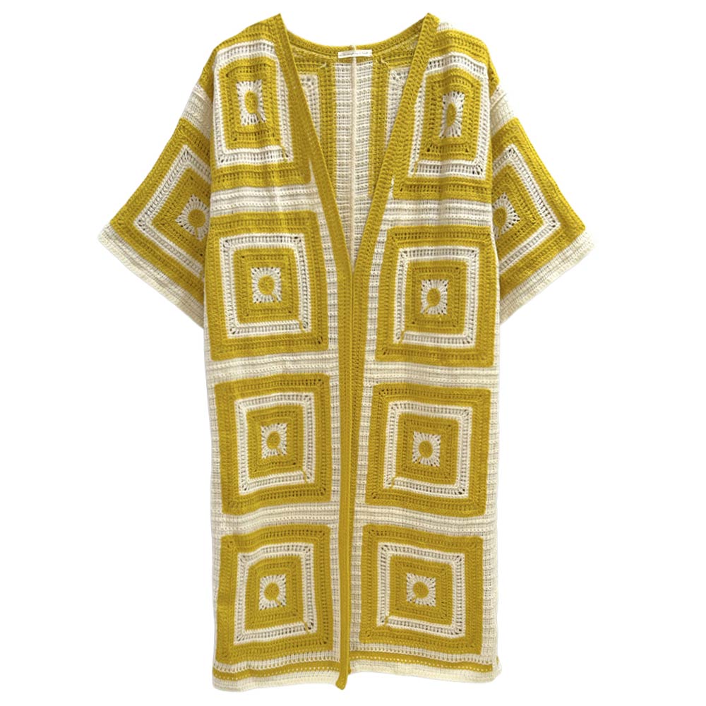 Geometric Square Pattern Crochet Long Cardigan Geometric Square Pattern Crochet Long Cardigan