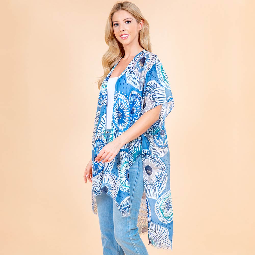 • Relaxed open front kimono wrap designed with an eye catching printed pattern and flowy silhouette. Easy to layer over tanks, tees, or dresses, it adds light coverage, movement, and a polished touch to everyday outfits, travel looks, or casual occasions.