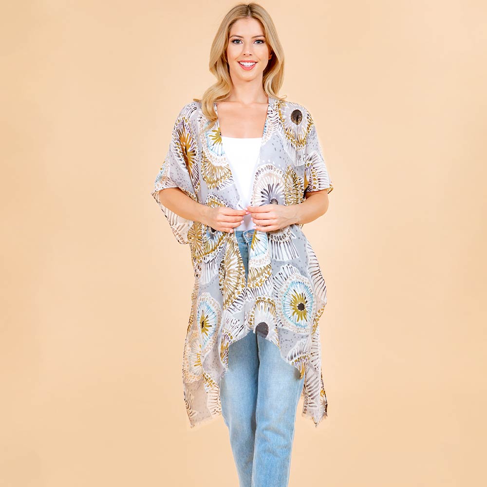 • Relaxed open front kimono wrap designed with an eye catching printed pattern and flowy silhouette. Easy to layer over tanks, tees, or dresses, it adds light coverage, movement, and a polished touch to everyday outfits, travel looks, or casual occasions.