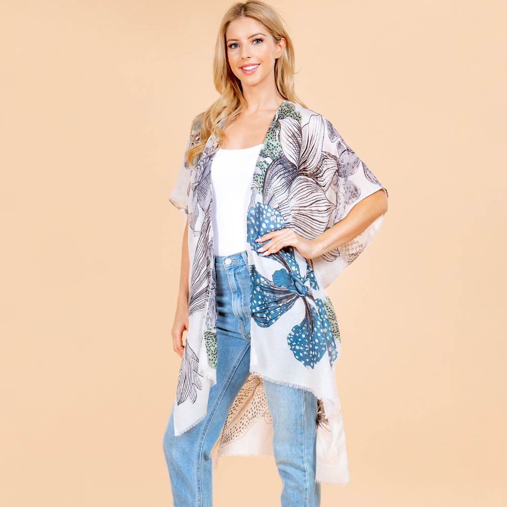 Lightweight Floral Pattern Open Front Kimono Poncho Lightweight Floral Pattern Open Front Kimono Poncho Lightweight Floral Pattern Open Front Kimono Poncho