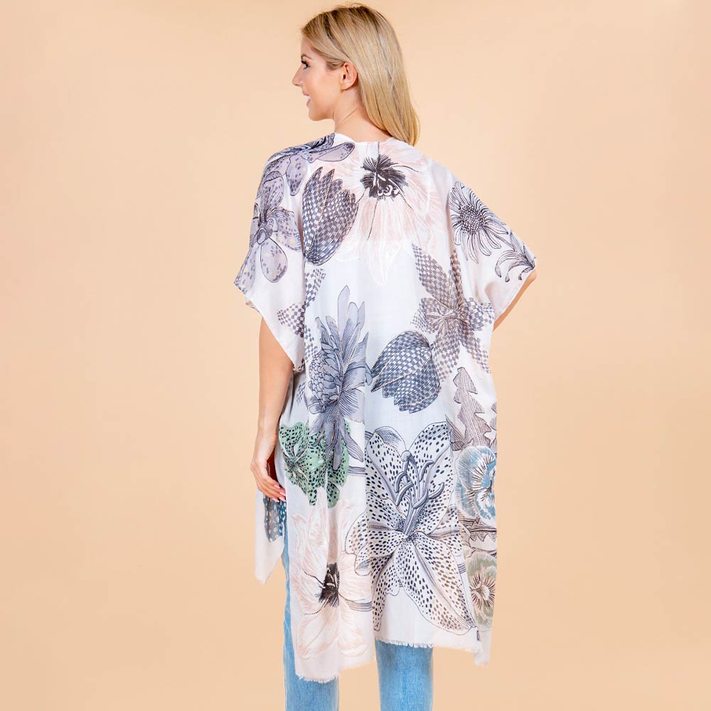 Lightweight Floral Pattern Open Front Kimono Poncho