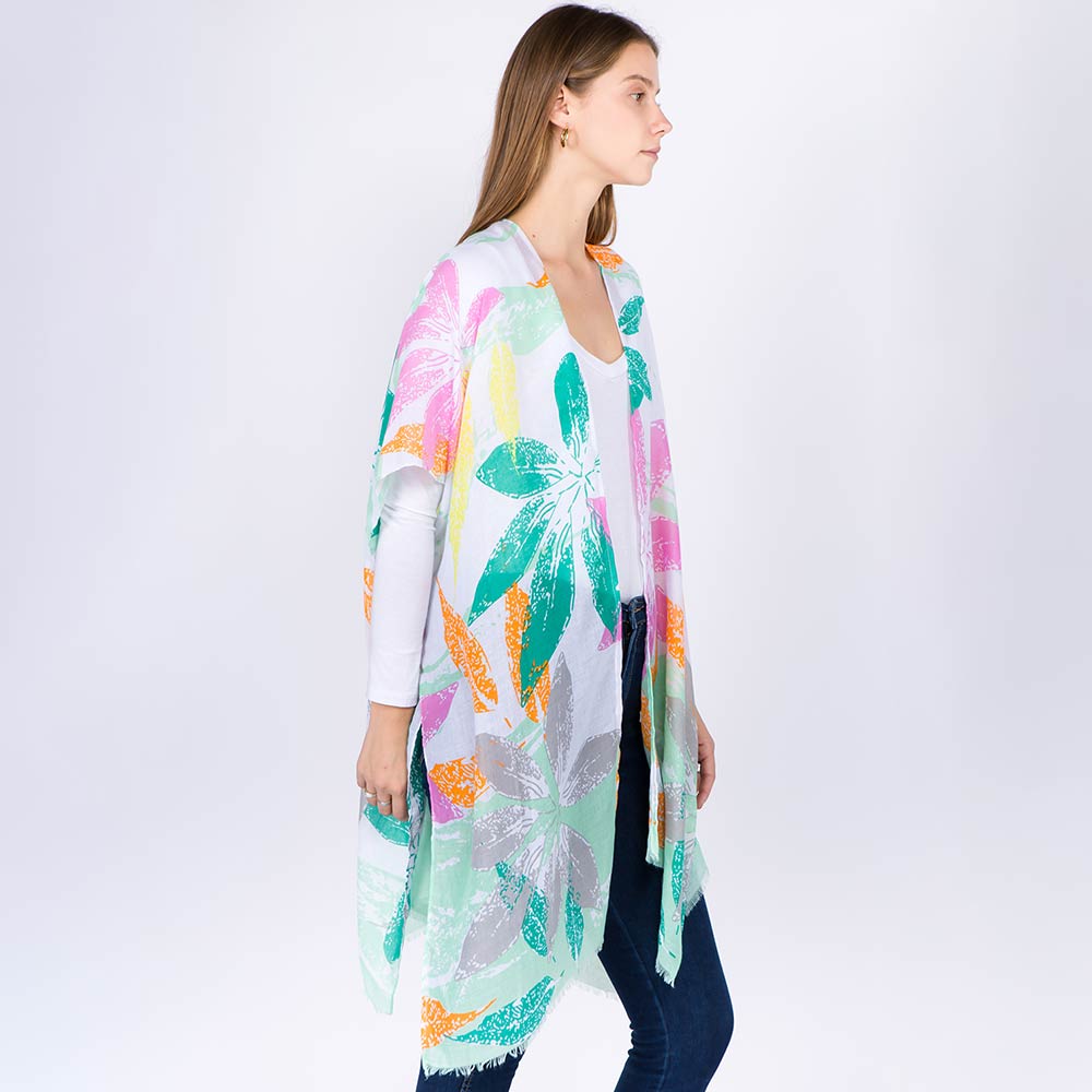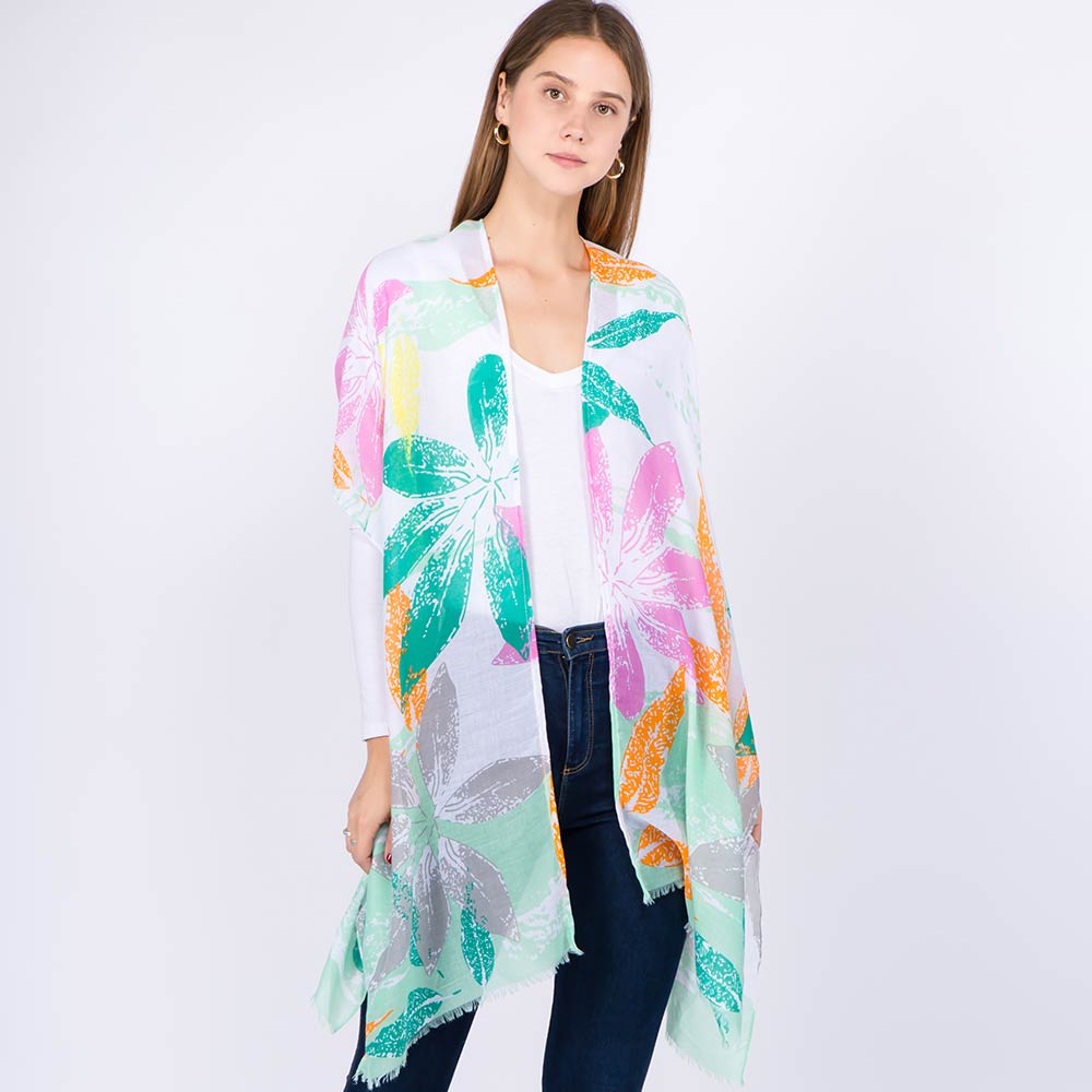 • Elegant floral kimono wrap designed for effortless layering and everyday versatility. Features an open-front silhouette with a soft drape that elevates casual outfits and complements resort, travel, or boutique collections. Ideal as a stylish cover-up or statement layer for year-round wear.
