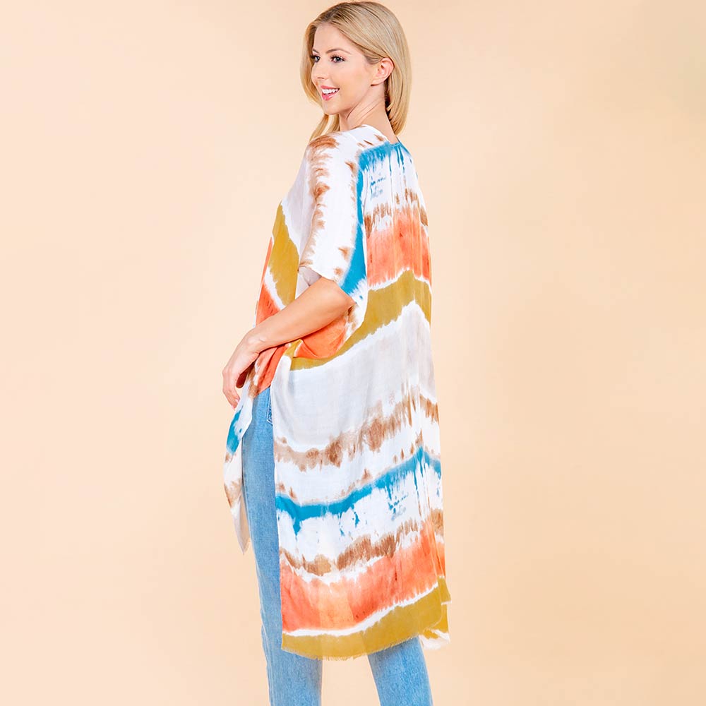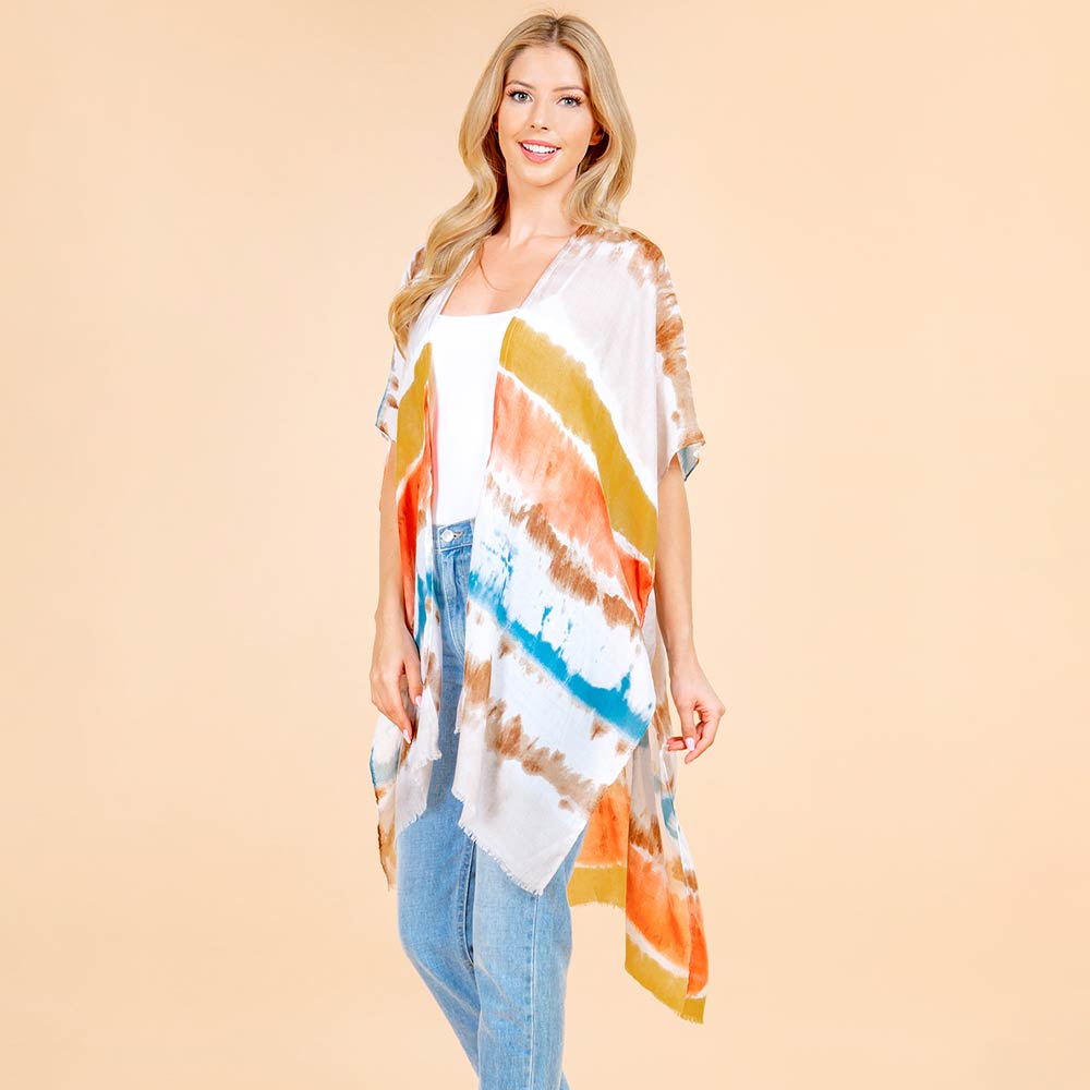 Lightweight Pastel Tie-dye Open Front Kimono Poncho