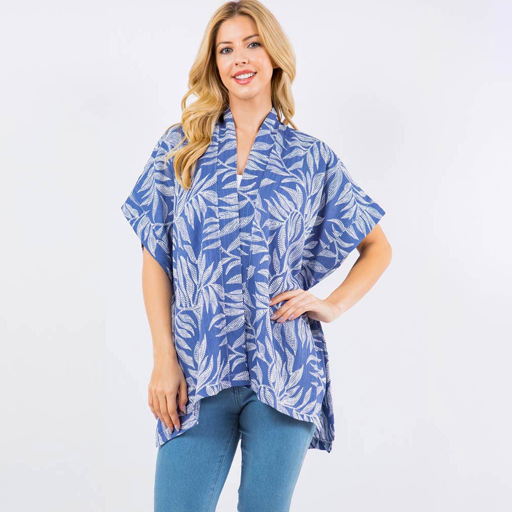 Lightweight Short Sleeves Leaf Pattern Open Front Kimono Poncho