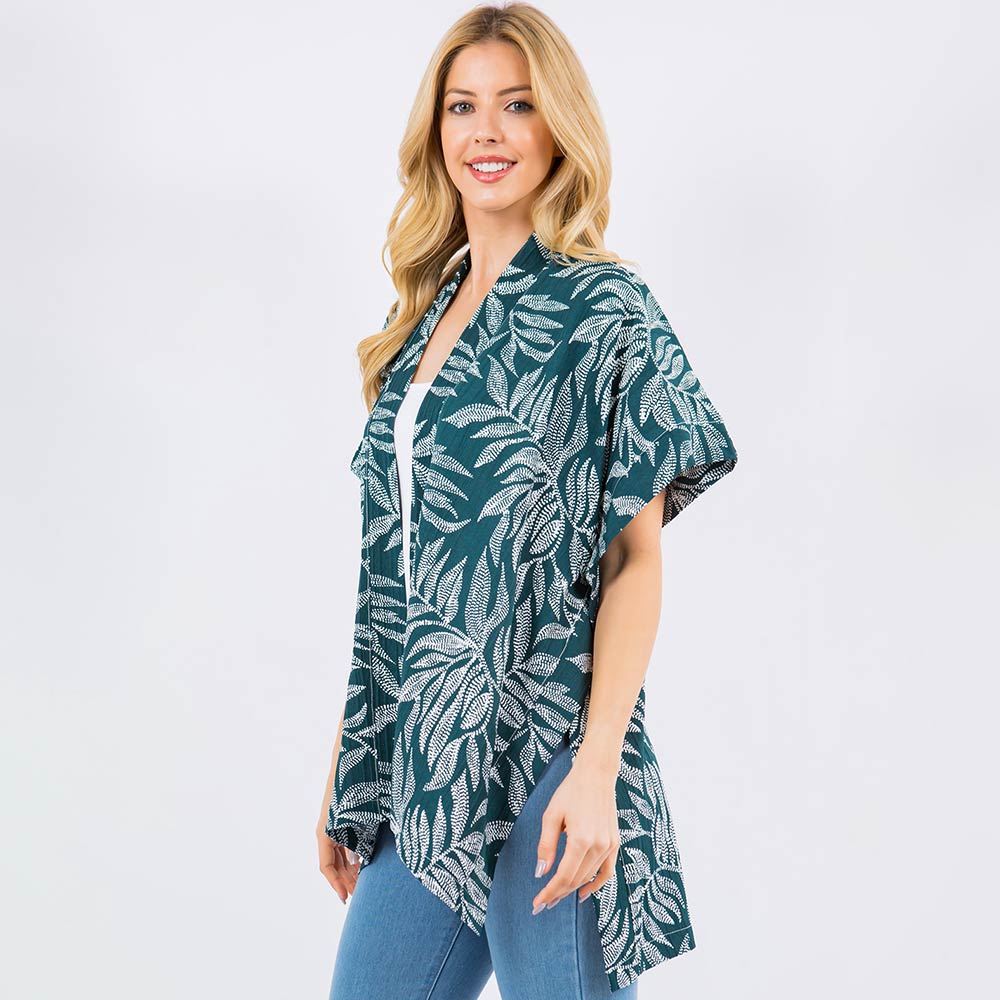 Lightweight Short Sleeves Leaf Pattern Open Front Kimono Poncho Lightweight Short Sleeves Leaf Pattern Open Front Kimono Poncho Lightweight Short Sleeves Leaf Pattern Open Front Kimono Poncho