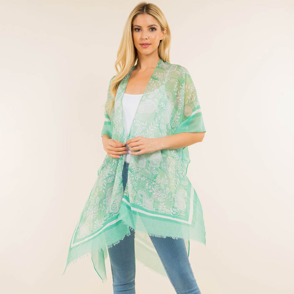 Paisley Border Pattern Open Front Kimono Poncho