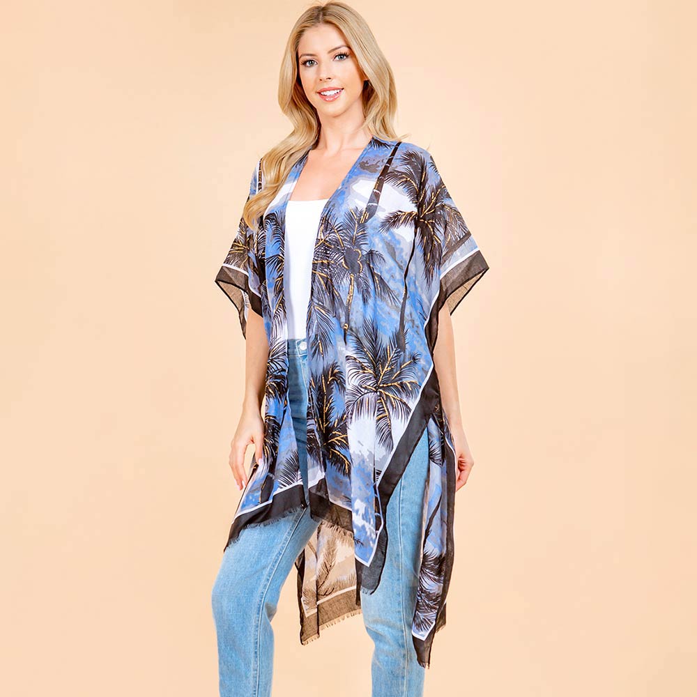 Palm Tree Leaf Pattern Open Front Kimono Poncho Wrap Palm Tree Leaf Pattern Open Front Kimono Poncho Wrap Palm Tree Leaf Pattern Open Front Kimono Poncho Wrap