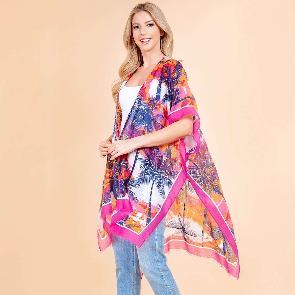 Palm Tree Leaf Pattern Open Front Kimono Poncho Wrap Palm Tree Leaf Pattern Open Front Kimono Poncho Wrap Palm Tree Leaf Pattern Open Front Kimono Poncho Wrap