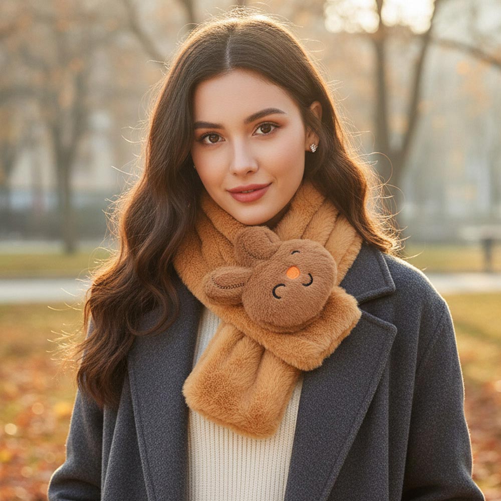 • Stay warm and stylish with the Plush Bunny Scarf, a soft winter essential featuring an adorable animal design. Perfect for chilly days, this cozy accessory adds a playful touch to any outfit while keeping you snug and comfortable throughout the cold season.