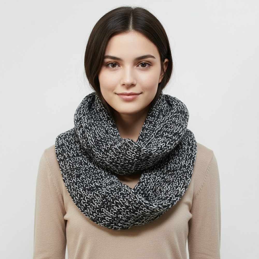 • Stay warm and effortlessly chic with this two-tone chunky infinity scarf. Designed with a soft knit texture and a looped silhouette, it offers both comfort and modern appeal—perfect for layering during cool days or adding a touch of style to casual outfits.