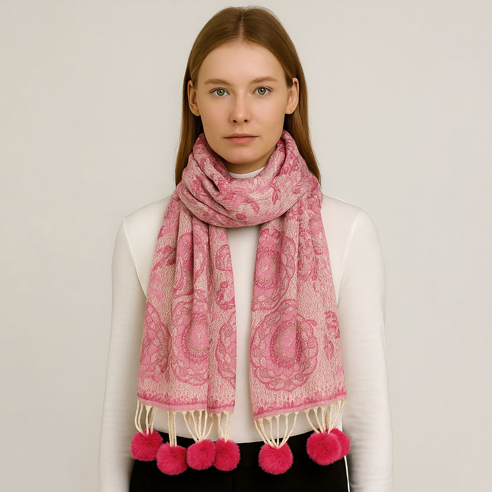 Elegant Patterned Pom Tassel Accent Winter Scarf
