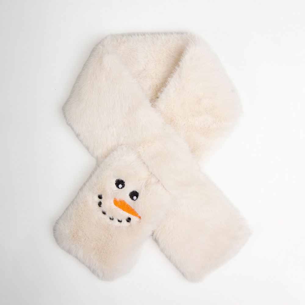 Details • Size : 4" X 34" • Add cozy charm to your winter look with this snowman scarf featuring a cheerful embroidered face. Perfect for holiday outfits, seasonal gatherings, and gifting, this soft accessory keeps you warm while spreading festive cheer.