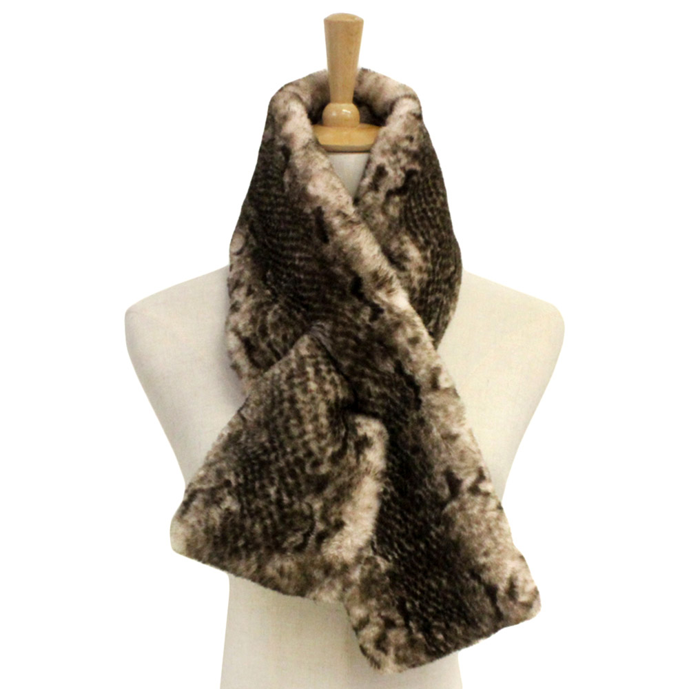 Snake Skin Patterned Faux Fur Pull Through Scarf