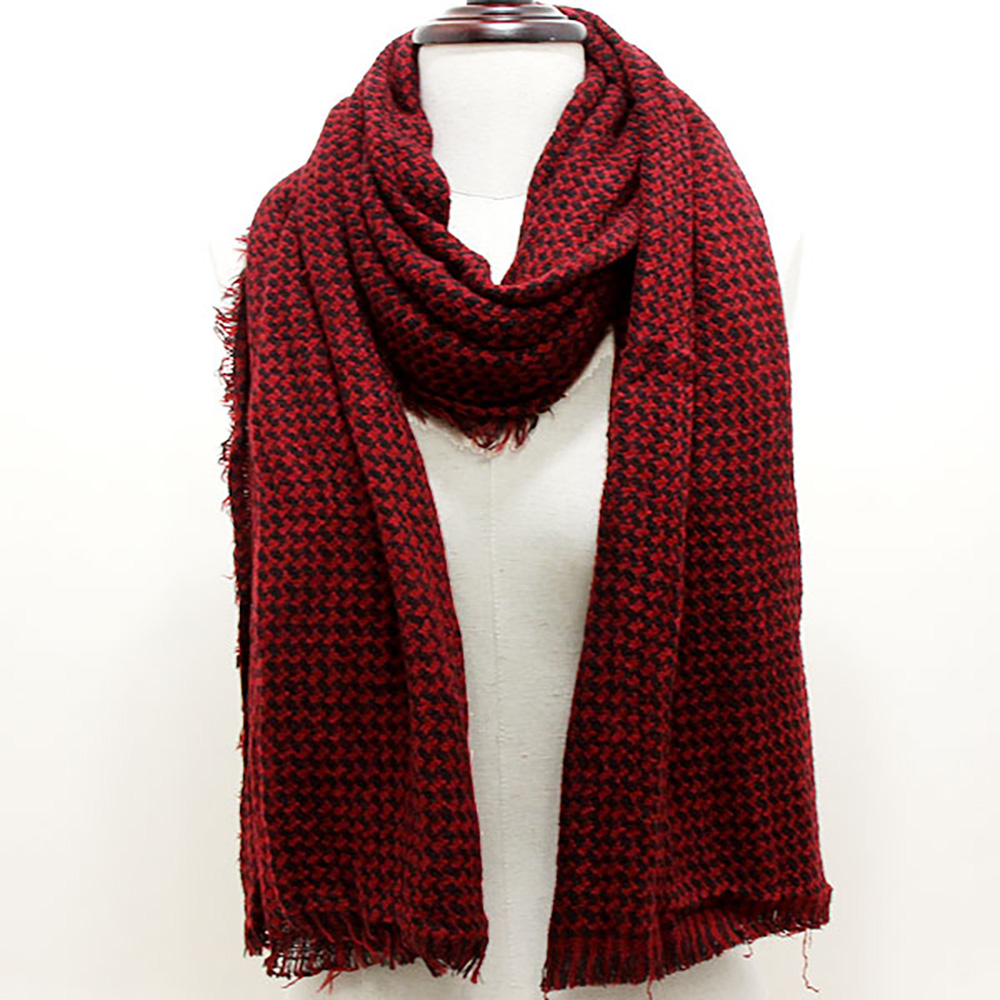 Details • Size : 24" X 80" • Material : 100% Acrylic • Elevate your cold-weather look with this classic houndstooth pattern scarf. Designed with a soft woven texture and lightly fringed edges, it offers warmth and sophistication—perfect for adding a timeless accent to both casual and polished outfits.