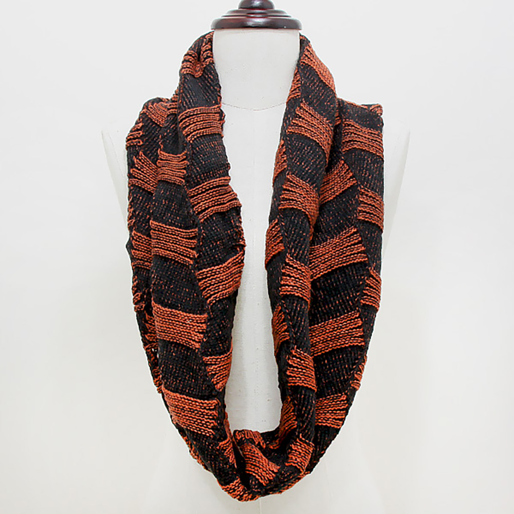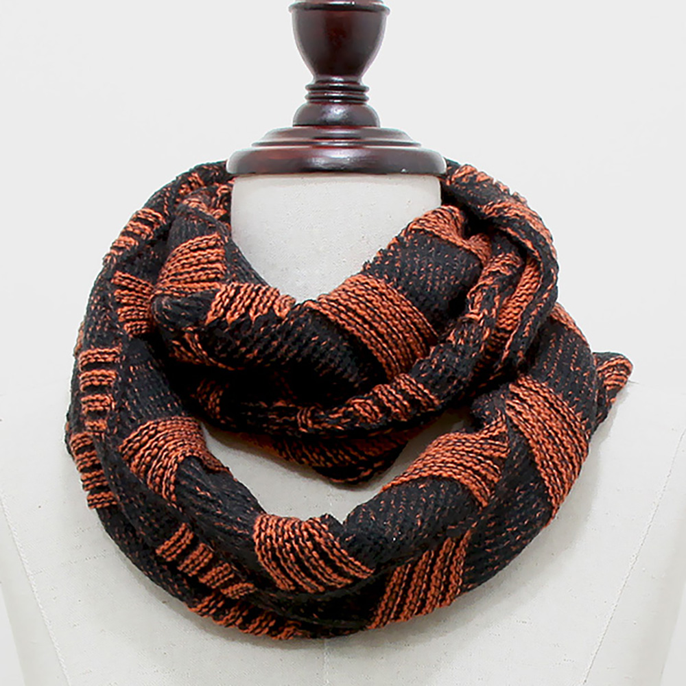 Details • Size : 12" X 50" • Material : 100% Acrylic • Wrap yourself in warmth and style with this striped infinity scarf featuring a cozy textured knit design. Its continuous loop shape makes it easy to wear and perfect for adding a touch of sophistication to any casual or seasonal outfit.