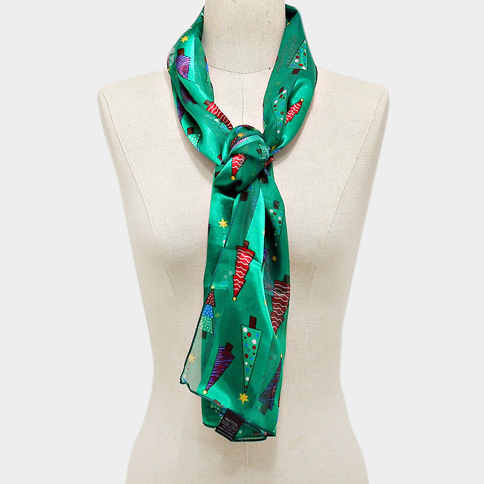 6PCS - Silk Feel Satin Striped Christmas Tree Print Scarves