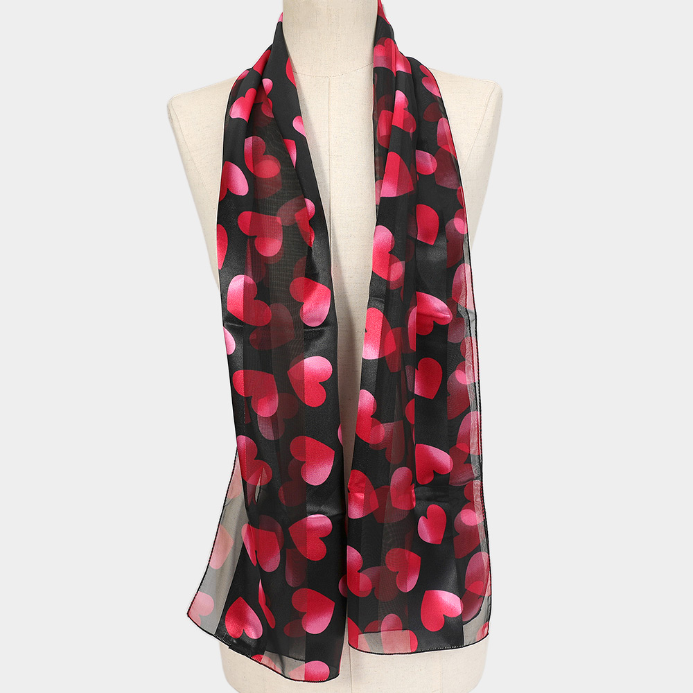 6PCS - Silk Feel Satin Striped Heart Patterned Scarf