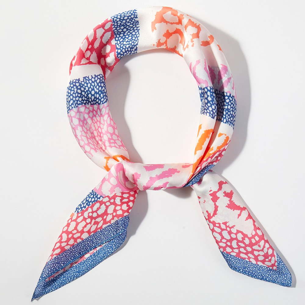 • Stylish square fashion scarf featuring an abstract animal stripe pattern with dynamic diagonal detailing and a refined border. Designed for versatile wear on the neck, hair, wrist, or handbag. A trend-driven accessory ideal for boutique collections, seasonal styling, and everyday fashion layering.