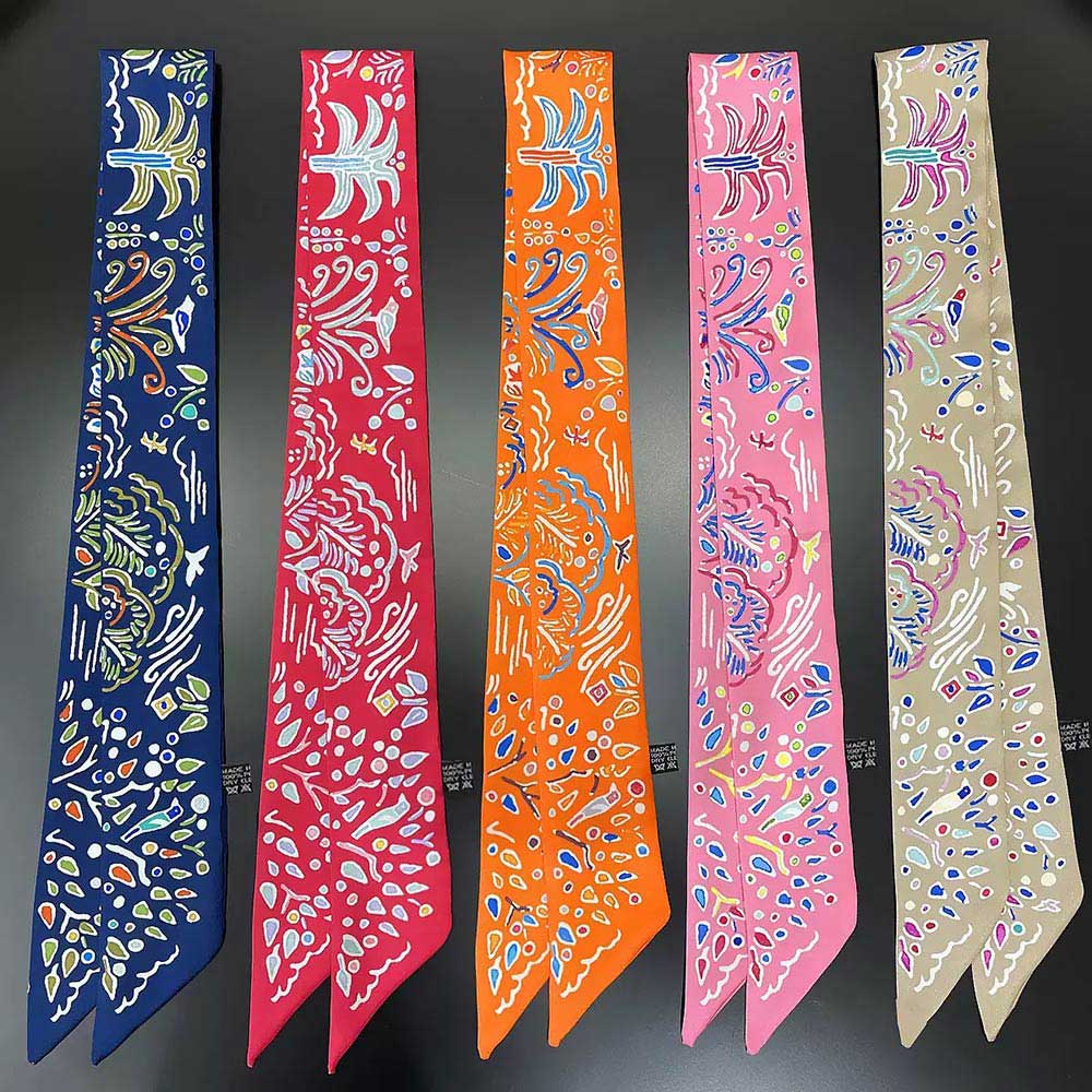 • Abstract pattern skinny scarf designed for versatile styling on hair, handbags, wrists, or necks. The elongated silhouette adds a refined, artistic touch to casual and dressy looks, making it ideal for boutique assortments, giftable displays, and everyday fashion styling.