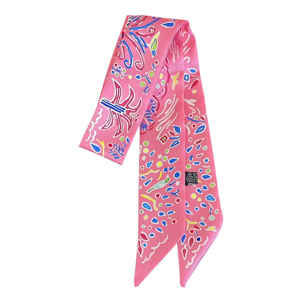• Abstract pattern skinny scarf designed for versatile styling on hair, handbags, wrists, or necks. The elongated silhouette adds a refined, artistic touch to casual and dressy looks, making it ideal for boutique assortments, giftable displays, and everyday fashion styling.