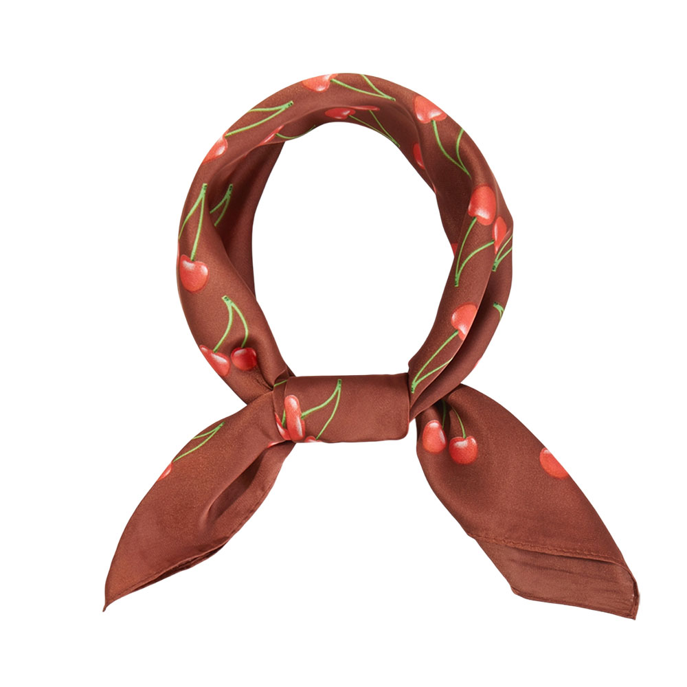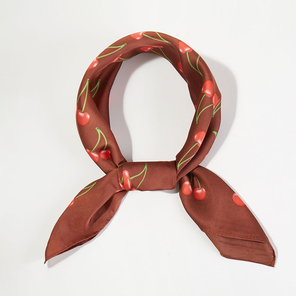 Details • Size : 27.5" X 27.5" • Material : 100% Polyester • Add a fun, playful accent to any outfit with this cherry print square scarf featuring a repeating fruit pattern that brings a charming retro vibe. Lightweight and soft, it’s perfect to wear as a neck scarf, hair accessory, or tied to a handbag. A stylish way to elevate everyday looks, from casual outings to special occasions.