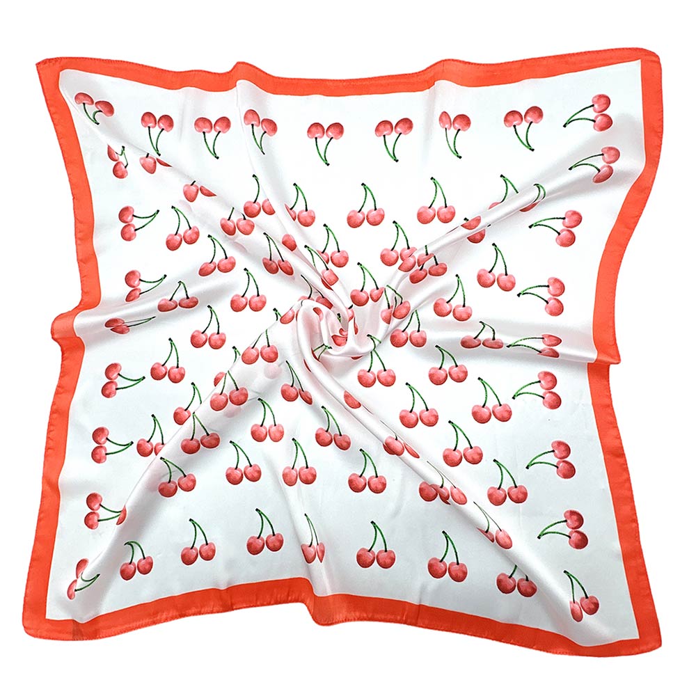 Cherry Pattern Printed Square Silky Satin Bandana Scarf Cherry Pattern Printed Square Silky Satin Bandana Scarf