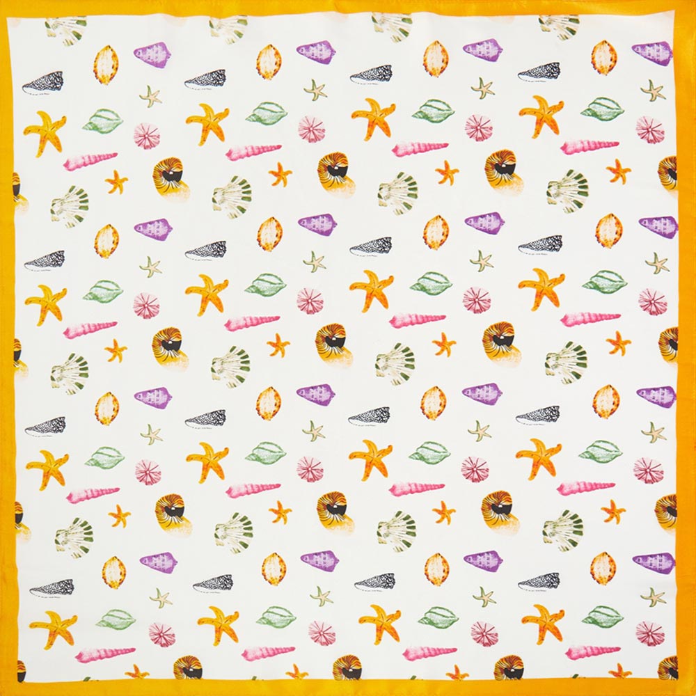 • Bring ocean-inspired charm to any outfit with this coastal print square scarf featuring playful starfish, seashells, and sea-treasures in cool blue and green tones. Designed with a bright blue border, it’s perfect for styling as a neck scarf, hair accessory, or handbag tie. A fun beach-day accent that adds breezy summer vibes to casual and vacation looks.