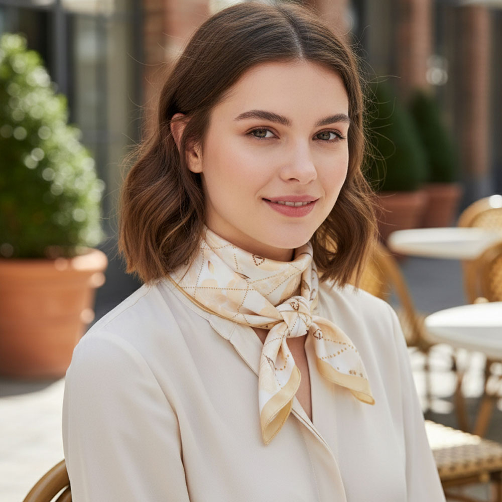 • Elevate your style with this floral geometric square scarf featuring a refined mix of soft patterns and a delicate border design. Its artistic layout blends modern and classic elements, making it a versatile accessory for everyday outfits, workwear, or special occasions. Perfect as a neck scarf, hair wrap, or handbag accent to enhance your look effortlessly.