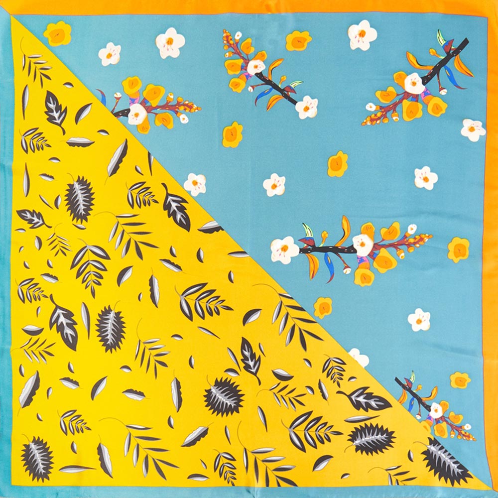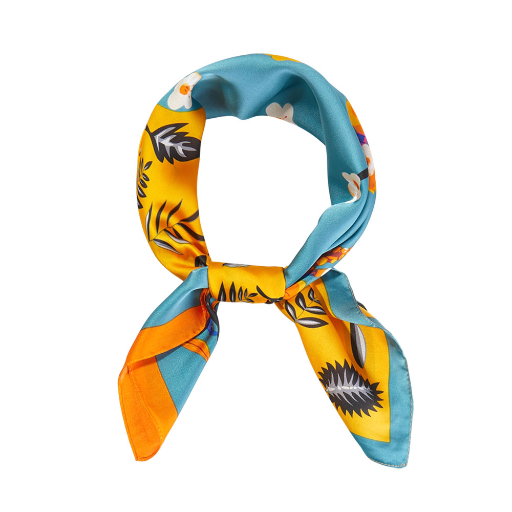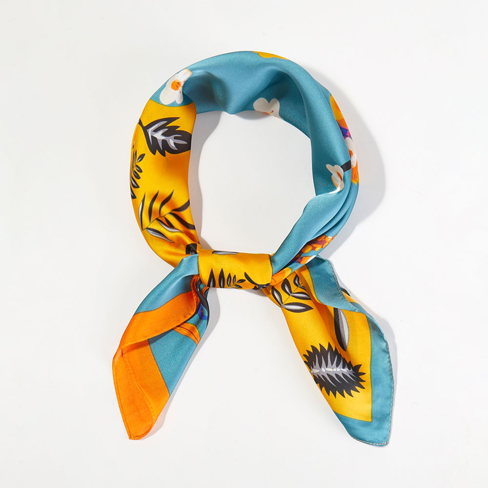 Details • Size : 27.5" X 27.5" • Material : 100% Polyester • Elevate everyday outfits with this vibrant square scarf featuring an artistic dual-pattern floral design. Its lightweight feel and versatile size make it perfect for wearing as a neck accessory, hair wrap, or handbag accent, adding a chic and playful flair to any look.