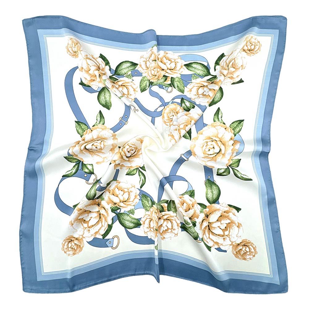 • This square fashion scarf showcases an elegant floral wreath design accented with flowing ribbon details for a refined, timeless look. Perfect for styling around the neck, in the hair, or as a bag accent, it offers versatile wear for everyday outfits, special occasions, gifting, and boutique displays. A stylish accessory that adds soft charm and visual interest to any collection.