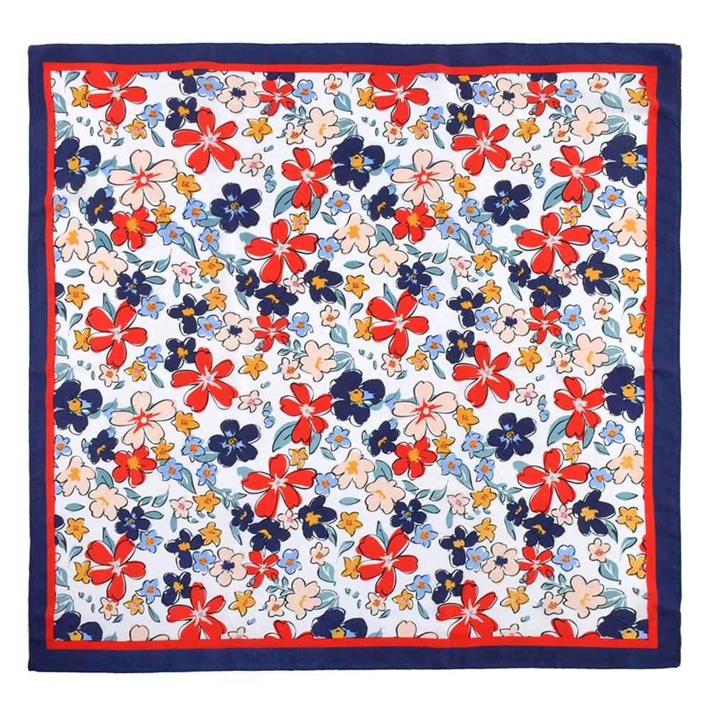 Flower Drawing Printed Square Silky Satin Bandana Scarf