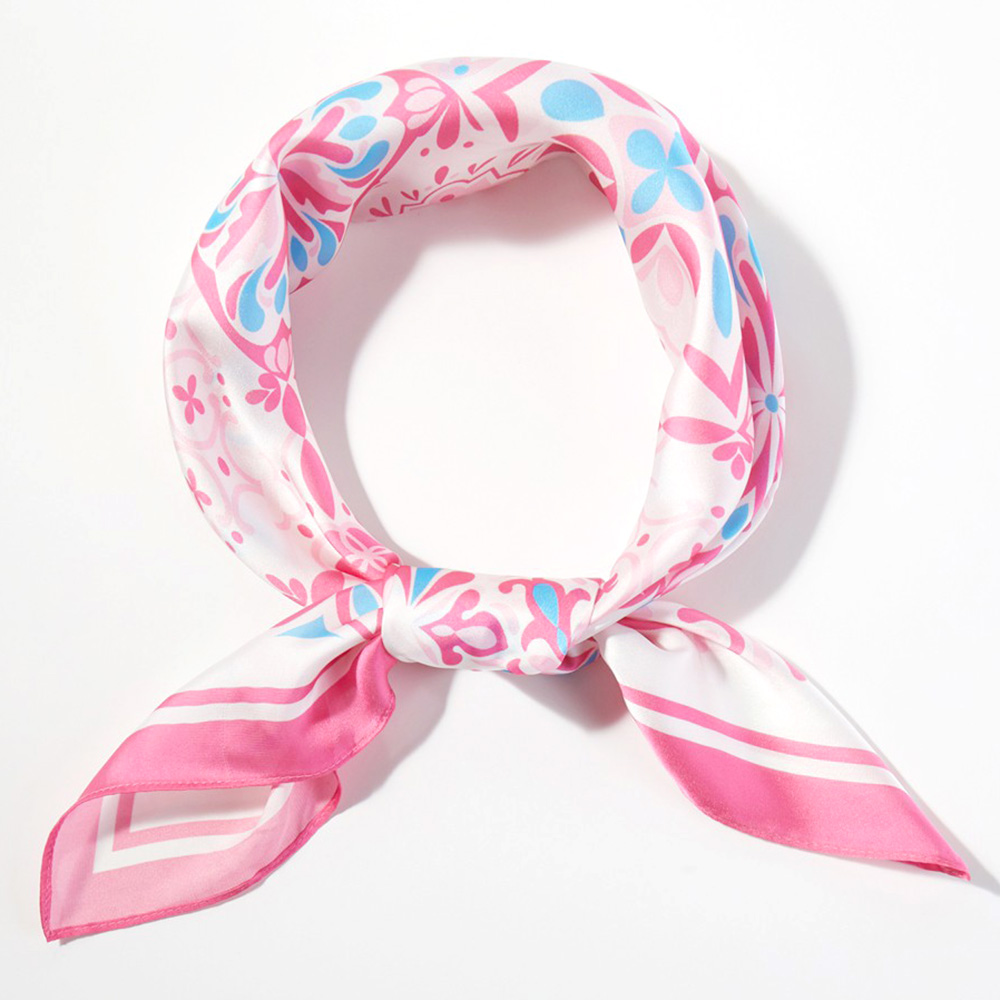 Details • Size : 27.5" X 27.5" • Material : 100% Polyester • Eye-catching square fashion scarf featuring an intricate Mediterranean tile-inspired pattern. Designed for versatile styling on the neck, hair, wrist, or handbag, this statement accessory adds artistic flair and boutique appeal to everyday outfits, resort looks, and curated fashion collections.