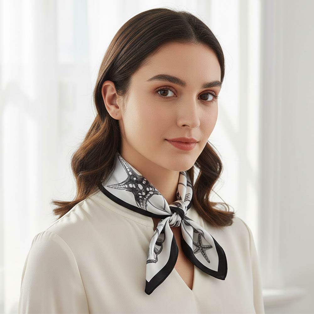 Mermaid Seashell Starfish Pattern Printed Square Silky Satin Bandana Scarf Mermaid Seashell Starfish Pattern Printed Square Silky Satin Bandana Scarf Mermaid Seashell Starfish Pattern Printed Square Silky Satin Bandana Scarf