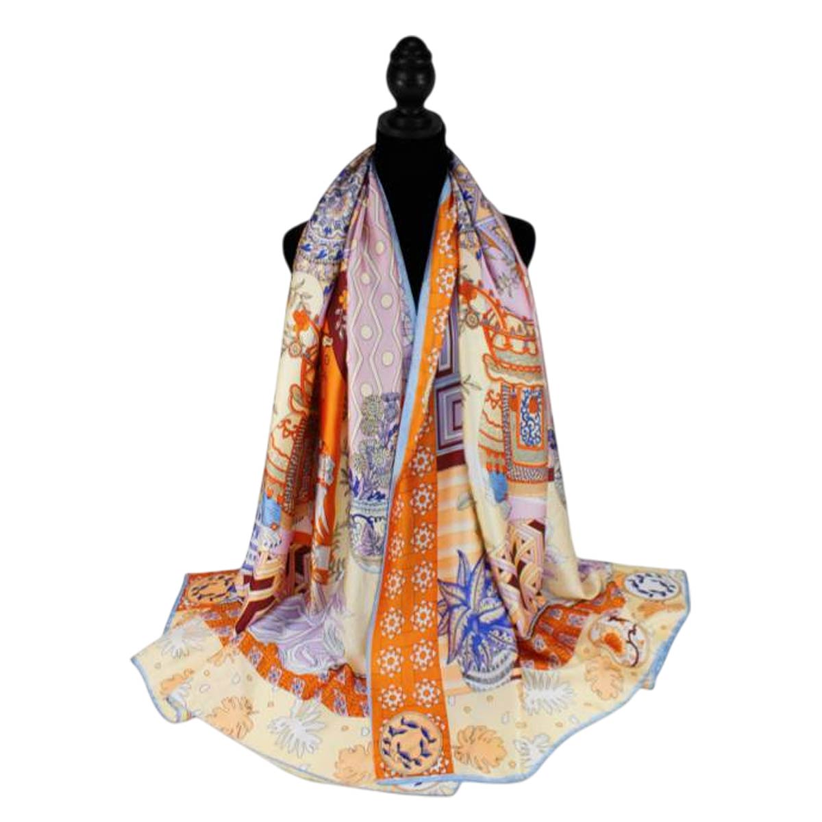 Details • Size : 35" X 78" • Material : 100% Viscose • Breathable, Lightweight, Skin-friendly and Soft • This artistic square scarf features an intricate elephant centerpiece framed by geometric patterns and decorative accents for a statement-making look. Designed for versatile styling on the neck, hair, or handbag, it’s a standout accessory for boutiques, gifting, travel collections, and fashion-forward everyday wear.