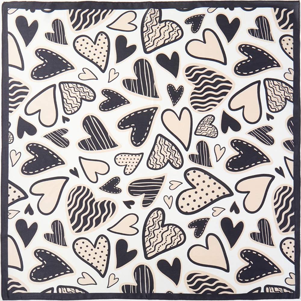 • Stylish square scarf featuring an abstract heart print with playful shapes and modern line details. Designed for versatile styling on the neck, hair, wrist, or handbag. A trendy accessory for boutiques, gift shops, seasonal collections, and everyday fashion displays.