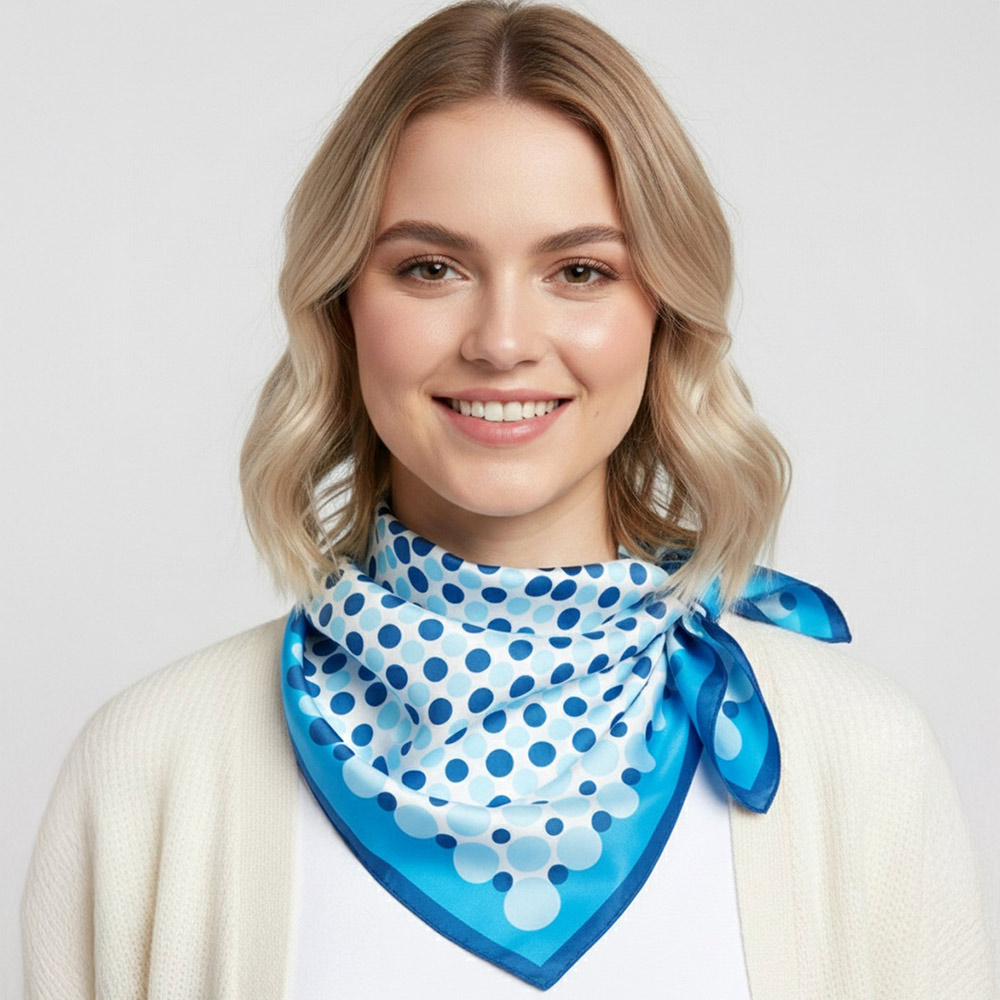 • Stylish square scarf designed with a bold polka dot pattern and clean framed layout. Easy to wear around the neck, hair, wrist, or bag for everyday styling. A versatile fashion accessory perfect for boutiques, gift shops, seasonal collections, and effortless outfit updates.