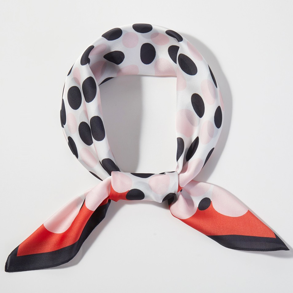 • Stylish square scarf designed with a bold polka dot pattern and clean framed layout. Easy to wear around the neck, hair, wrist, or bag for everyday styling. A versatile fashion accessory perfect for boutiques, gift shops, seasonal collections, and effortless outfit updates.