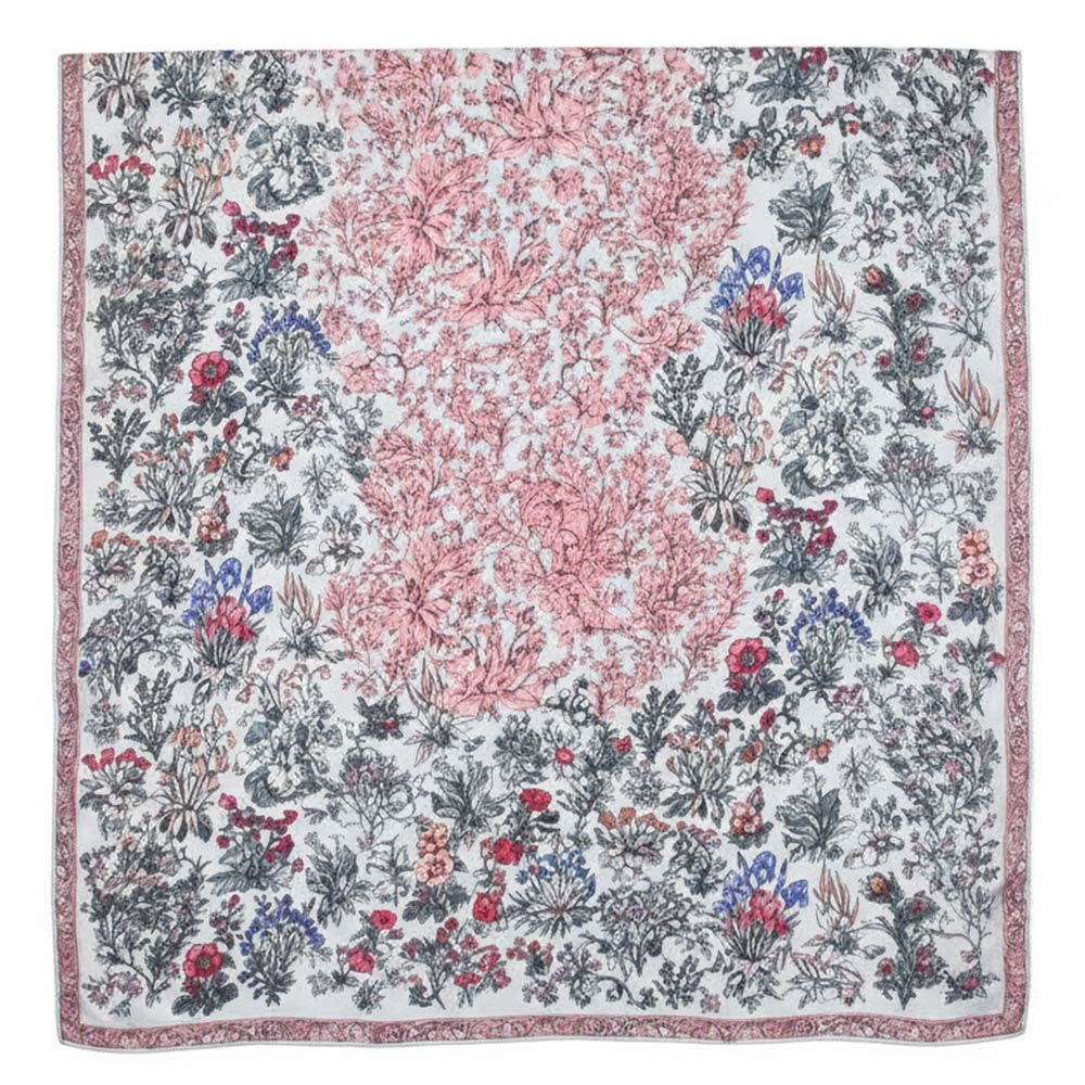 • This vintage botanical square scarf features an intricate floral pattern with a classic balanced layout. Designed for versatile styling, it can be worn around the neck, hair, handbag, or shoulders. A timeless accessory ideal for boutiques, gifting, seasonal collections, and everyday outfits with an elegant touch.